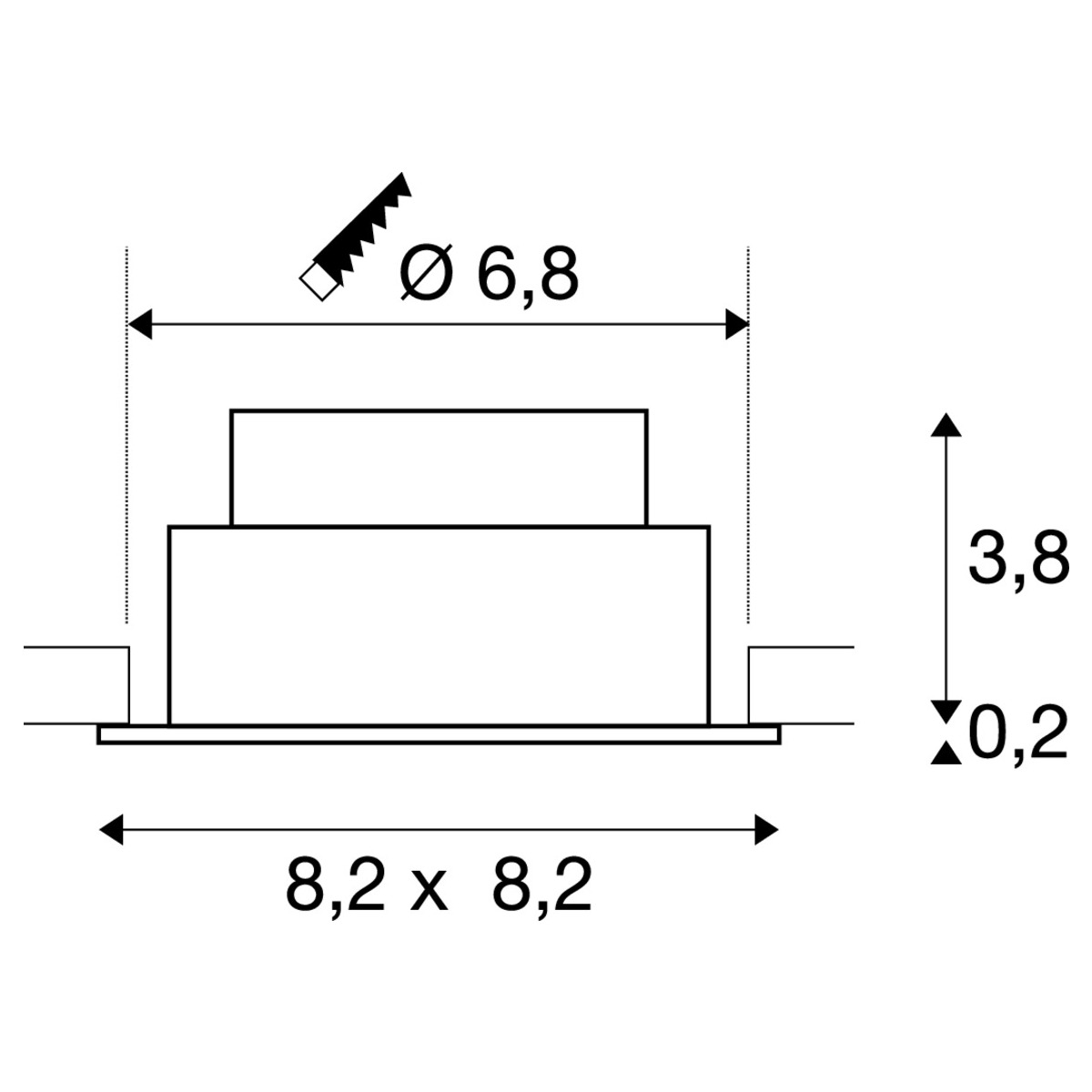 plafondinbouwring, D: 8.2 H: 2.6 cm, IP20, aluminium